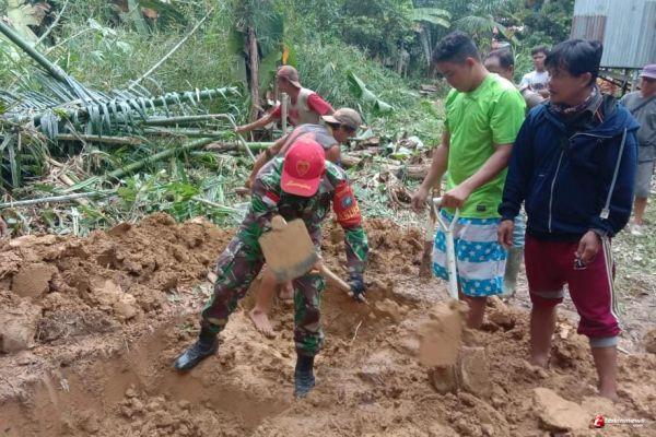 Wujudkan Kepedulian Kepada Warga Di Wilayah Binaannya, Babinsa Koramil 1206 - 05 / Embaloh Hulu Bantu Warga Gali Kubur