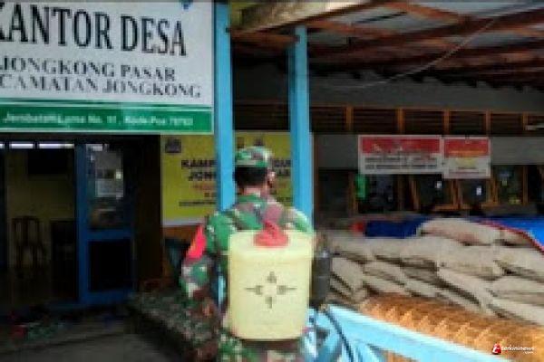 Rawan COVID-19 Babinsa Jongkong Penyemprotan Disinfektan Di Lokasi Pasar