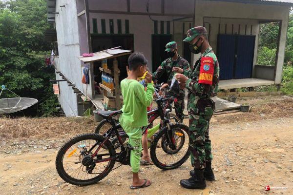 Sambangi Bocah, Team Mobile Kodim 1203/Ktp Bagikan Masker.