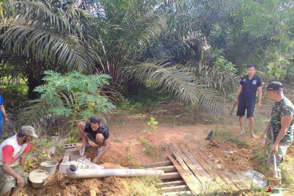 Bukut Penai - Guna menjalin Silaturahmi dengan masyarakat di wilayah binaan, Serka Suparjo Babinsa Kampung Bukut Penai Koramil 1206-11/Silat Hilir Kodim 1206/Psb berbaur dengan masyarakat bergotong royong membangun toilet umum, Jumat (11/06/21).