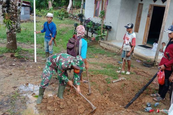 Pipa Saluran Air Bersih Tersumbat, Babinsa Bersama Warga Lakukan Kerja Bakti