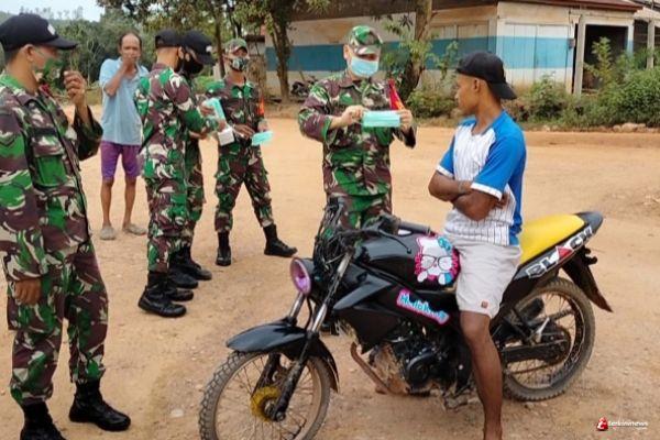 Hari ini Pj. Danramil 1203-07/Marau Pelda Antonius ikut turun kejalan membagikan masker kepada warga yang melintas di Posko PPKM Mikro, yang berlokasi Kecamatan Marau, Kabupaten Ketapang.