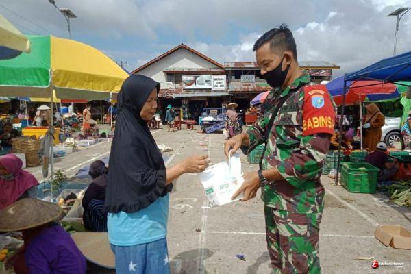 Aksi Babinsa Jongkong Menekan Penyebaran COVID-19 Bagikan Masker Ke Warga