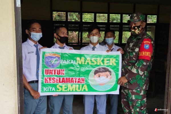 Kunjungi SMAN 1 Pengkadan Babinsa Ingatkan Pelajar Wajib Gunakan Masker