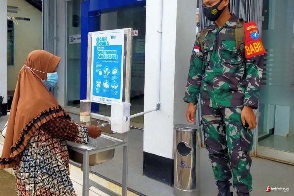Semitau - Untuk mendisiplinkan warga masyarakat, Babinsa Koramil 02/Semitau Serda Ferdinandus tidak bosan bosannya melaksanakan kegiatan Penegakan Disiplin Mematuhi Protokol Kesehatan yang di laksanakan di pasar tradisional Semitau, tepatnya lokasi Unit BRI Semitau, Kabupaten Kapuas Hulu, Jumat (18/06/2021).