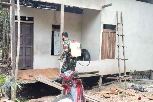 Babinsa Terus Laksanakan Penyemprotan Disinfektan di Wilayah Desa Binaannya