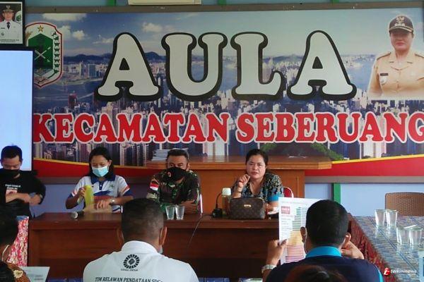 Danramil 16/Seberuang Kodim 1206/Putussibau Peltu Benhard menghadiri acara rapat tentang sosialisasi upaya peningkatan kewaspadaan terhadap resiko penyebaran Virus Corona ( Covid -19 ) di wilayah Kecamatan Seberuang, Jumat (18/06/2021)