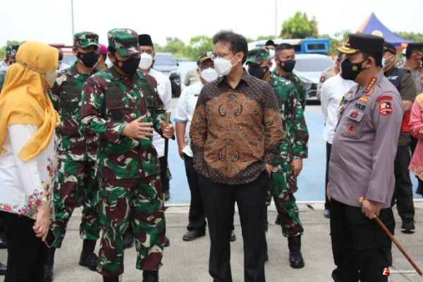 Panglima TNI Marsekal Hadi Tjahjanto bersama Kapolri Jenderal Listyo Sigit Prabowo dan Menteri Kesehatan (Menkes) Budi Gunadi Sadikin meninjau langsung Rumah Susun (Rusun) Nagrak Jakarta Utara, dan beberapa titik posko PPKM Mikro di DKI, terkait penanganan Covid-19 atau virus corona.