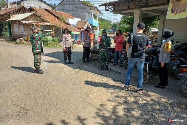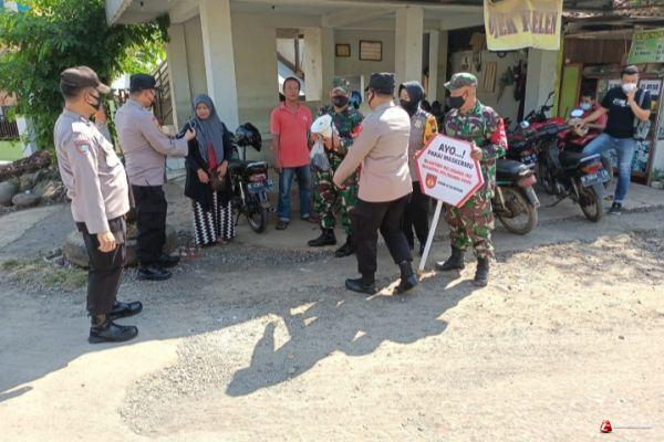 Satgas PPKM Skala Mikro dari TNI - Polri tersebut melakukan himbauan dan edukasi serta membagikan masker di Jalan Raya Desa Plelen menuju Desa Ketanggan, Kecamatan Gringsing, Kabupaten Batang, Senin (28/6/21)