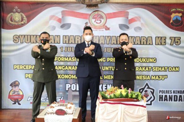 Polres Kendal mengadakan acara syukuran usai melaksanakan kegiatan upacara Hut Bhayangkara Ke-75 dilaksanakan secara virtual. Dilanjutkan dengan acara Syukuran yang dilaksanakan di Aula Mapolres Kendal, dalam merayakan HUT Bhayangkara Ke-75 dengan ditandai pemotongan nasi tumpeng oleh Bupati Kendal Dico M Ganinduto dan juga pemotongan kue ulang tahun oleh Dandim 0715 Kendal Letkol Inf Iman Widhiarto ST, Kamis (01/07/2021) Pukul 10.00 WIB.