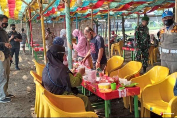 Namun petugas masih memberikan toleransi bagi warga yang membeli makanan untuk dibawa pulang, sehingga tidak menimbulkan kerumunan.
