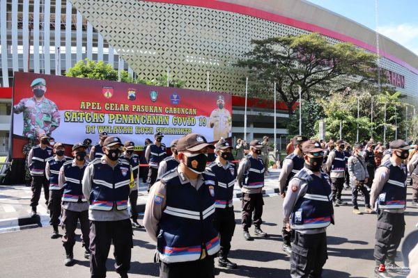 Polda Jateng laksanakan Apel Gelar Pasukan Gabungan Satgas Penanganan Covid-19 di Lapangan Balaikota Surakarta, Selasa (6/7/2021).