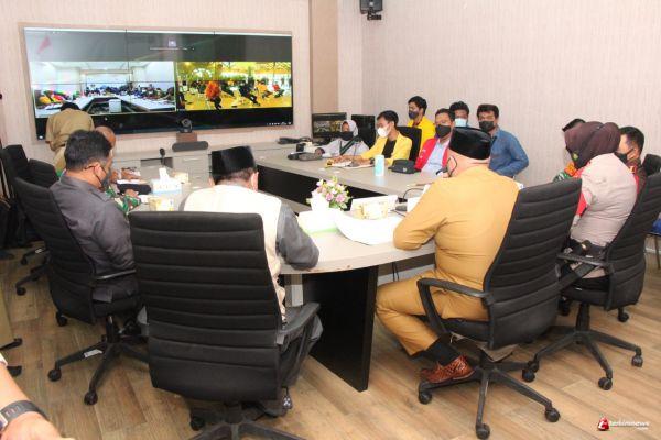TEGAL - Ketua Satgas Covid-19 Kota Tegal yang juga Wali Kota Tegal, H. Dedy Yon Supriyono menerima audiensi perwakilan Aliansi Mahasiswa Tegal dan Aliansi Tegal Menggugat terkait dampak dan akibat Pemberlakuan Pembatasan Kegiatan Masyarakat (PPKM) Darurat Jawa-Bali di Kota Tegal bagi masyarakat di Command Room Dinas Komunikasi dan Informatika (Dinkominfo) Kota Tegal. Senin (19/07/2021).