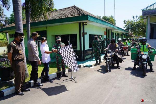 Selanjutnya Forkopimda memberangkatkan Babinsa dan Bhabinkamtibmas untuk membagikan bantuan hingga ke pelosok-pelosok desa.