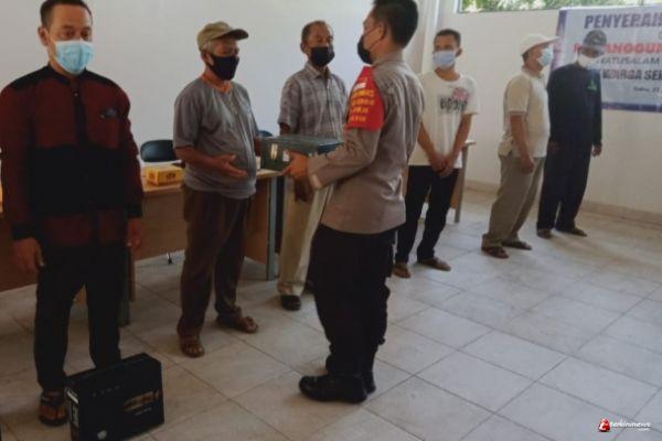 Penyerahan bantuan secara simbolis dilakukan Kapolsek Buaran AKP Guritno, bersama Factory Manager PT Pajitex Ir Agung Trianto di perusahaan setempat di Desa Watusalam Kecamatan Buaran, Selasa (27/7). Dalam pembagiannya, dibantu aparat desa di lingkungan perusahaan.
