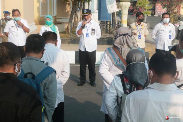 TEGAL - Sekretaris Daerah Kota Tegal, Johardi mengapelkan sebanyak 75 Aparatur Sipil Negara (ASN) Pemerintah Kota (Pemkot) Tegal yang datang terlambat, Rabu pagi (4/8/2021) di Gerbang Balai Kota Tegal.