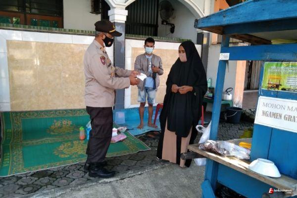 Akp Joko menambahkan bahwa selain penyampaian imbauan prokes, pihaknya juga memberikan masker gratis kepada warga yang dijumpai yang kebetulan lupa membawa masker.