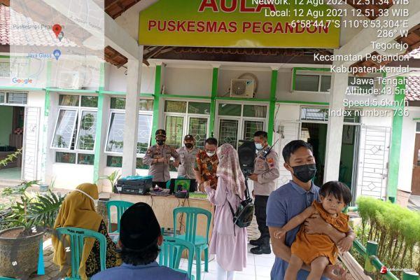 Dalam rangka mendukung program pemerintah menekan penyebaran Covid 19 Kapolsek Pegandon Akp Zainal Arifin S.H. laksanakan monitoring Vaksinasi Dosis I oleh Puskesmas Ngampel di Balai Desa Pegandon pada Hari Jumat, 13/8/2021.
