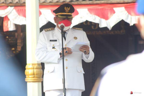 Wali Kota Tegal H. Dedy Yon Supriyono dalam yang bertindak sebagai inspektur upacara dalam sambutannya mengapresiasi dan berterima kasih kepada pahlawan Covid-19.