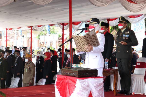 Bupati Brebes Hj Idza Priyanti SE MH menjadi Inspektur Upacara. Dengan suara menggelegar, Bupati membacakan sambutan tertulis Gubernur Jawa Tengah Ganjar Pranowo SH MIP. Menurut Ganjar, perayaan Kemerdekaan saat ini merupakan tahun kedua ditengah Pandemi Covid-19. Dia menaruh hormat kepada para tenaga kesehatan yang semangatnya terus berkobar menangani Pandemi.