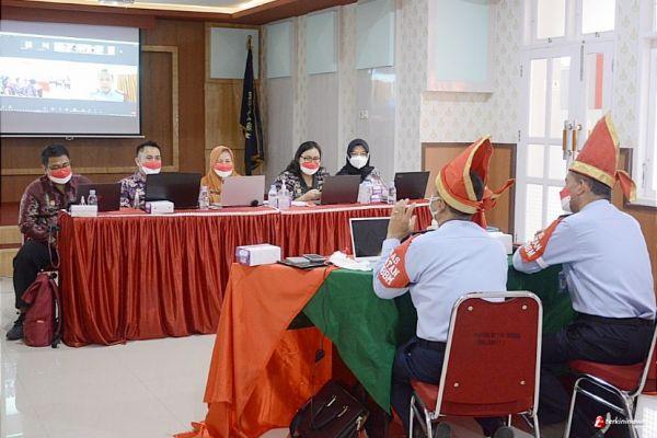 Tim itjen kemenkumham diantaranya Siti Sofiatun, Nasrudin Nurdiansyah, Ade Kurniawan, Tri Darma Manulang, dan Dita Priandini, turut hadir mendengar paparan Tim Pokja WBBM satker kanwil, yang disampikan kadiv pelayanan hukum dan dan ham Anggoro Dasananto.
