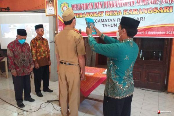 Acara Pengambilan Sumpah Janji dan Pelantikan Perangkat Desa Karangsari Kecamatan Rowosari pada Kamis (2/9/2021) dimulai pada pukul 09.30 WIB dan dihadiri oleh Badan Permuyawaratan Desa (BPD) Karangsari, Kapolsek Rowosari iPTU Untoro, Koramil Rowosari dan warga masyarakat sekitar.