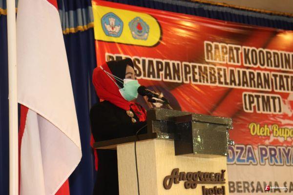 Ajakan tersebut disampaikan Bupati saat rapat koordinasi (Rakor) Persiapan Pembelajaran Tatap Muka Terbatas (PTMT) di Hotel Anggraeni Jatibarang, Kamis (2/9).