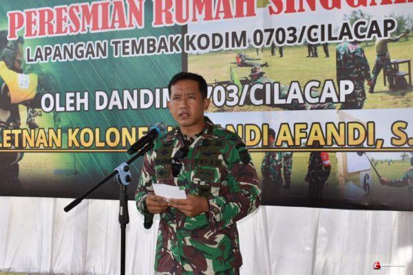 Dalam sambutanya Dandim 0703 Cilacap Letkol Inf Andi Afandi, S.I.P mengucapkan puji syukur dan ucapan terima kasih kami atas kehadiran seluruh hadirin dalam kegiatan peresmian rumah singgah lapangan tembak Kodim 0703/Cilacap.