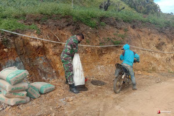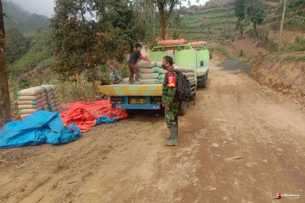 Babinsa Gerlang Kawal Droping Material Di Lokasi TMMD Reguler 112 TA. 2021
