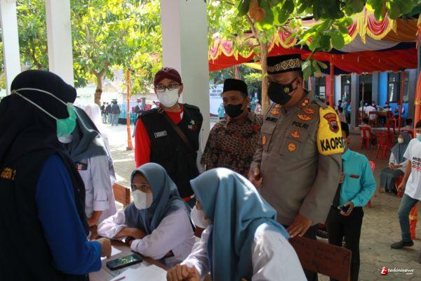 Polres Demak menggelar vaksinasi serentak bagi pesantren dan rumah ibadah sinergi Polri dan Staf Khusus Presiden RI sekaligus Bansos peduli, Selasa (07/09/2021), bertampat di Pondok Pesantren (Ponpes) Kyai Gading, Desa Candisari, Kecamatan Mranggen, Kabupaten Demak.
