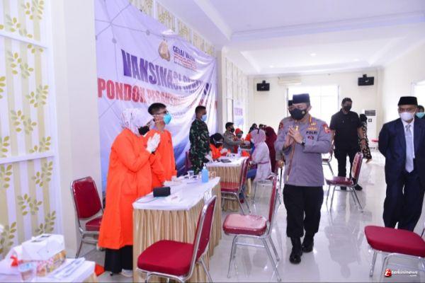 Kapolri Jenderal Listyo Sigit Prabowo menghadiri peresmian gedung baru asrama putri Pondok Pesantren Assalam sekaligus melakukan peninjauan vaksinasi massal dalam serangkaian kunjungan kerjannya di Sukabumi, Jawa Barat, Senin (13/9/2021).