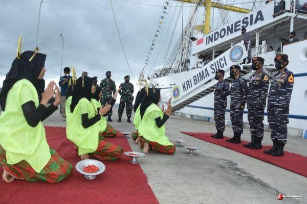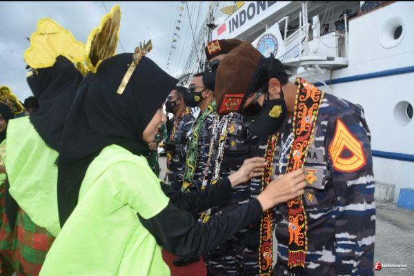 Tiba di Sei Pancang Nunukan, Taruna AAL Satlat KJK 2021 KRI Bima Suci Disambut Tarian Daerah