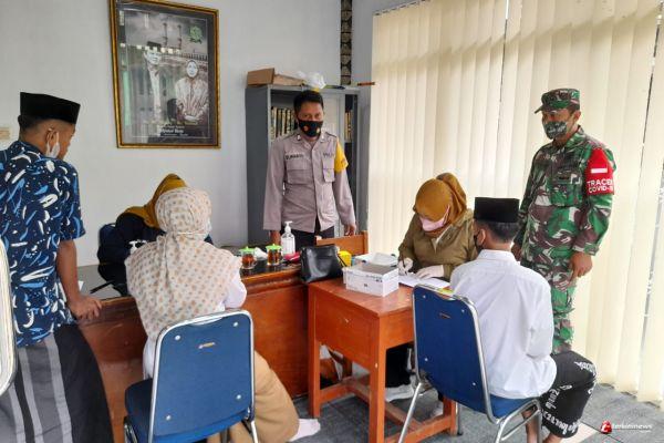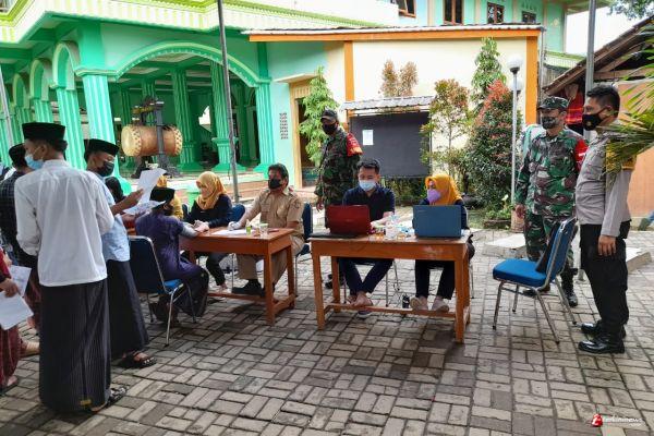 Bhabinkamtibmas dan Babinsa melaksanakan pemantauan giat Vaksinasi di Puskesmas Limbangan dan Ponpes Miftahul Huda Desa Peron