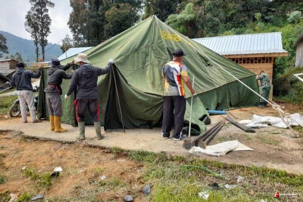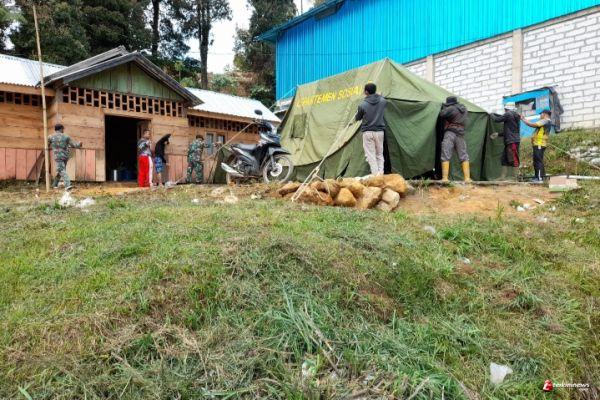 Sebelum pembukaan kegiatan TMMD Reguler ke- 112, personil Kodim 0736 Batang memasang tenda di Dukuh Wonopriyo, Desa Gerlang, Kecamatan Batang, Kabupaten Batang, Selasa (14/9/21)