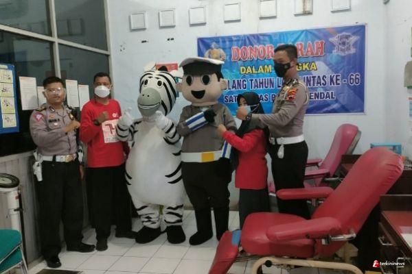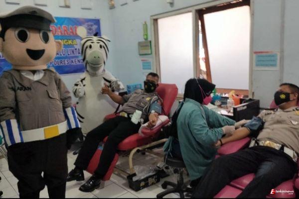 HUT Lalu Lintas ke-66, Sat Lantas Polres Kendal Gelar Bakti Sosial Donor Darah