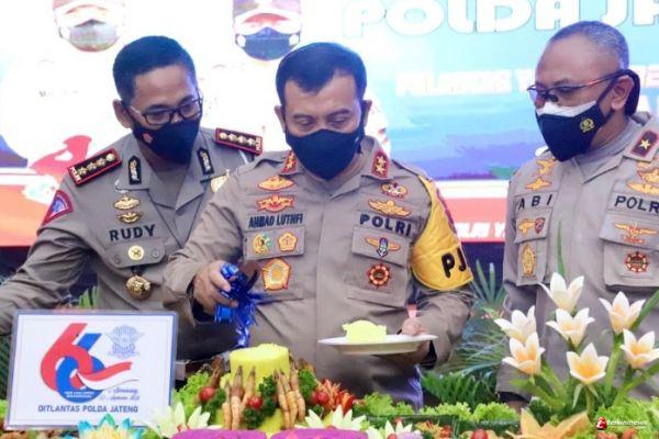 Kapolda Jateng, Irjen Pol Ahmad Luthfi dan Pangdam IV/ Diponegoro, Mayjen TNI Rudianto menghadiri puncak perayaan HUT Lalu Lintas Bhayangkara ke 66 yang digelar di gedung Borobudur, Mapolda Jateng, Rabu (22/9/2021).