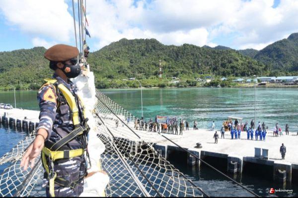 Setelah menempuh pelayaran sejauh 1.620.22 NM dari Tarakan, Taruna Akademi Angkatan Laut (AAL) Tingkat III Angkatan 68 yang tergabung dalam Satuan Latihan Kartika Jala Krida (KJK) tahun 2021 bersama KRI Bima Suci dalam misi 99 keliling Indonesia, menyelesaikan Etape ke- 8 dan tiba di Dermaga Faslabuh Ranai, Kepulauan Natuna, Selasa (28/9/2021).