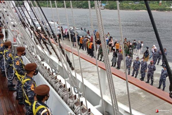 Tampak hadir melepas keberangkatan Taruna AAL Satlat KJK dan KRI Bima Suci di Dermaga Faslan TNI AL antara lain, Komandan Lanal Ranai dampingi Bupati Natuna, Wan Siswandi, Wakil Bupati Natuna Rodial Huda.