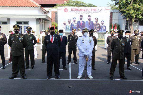 TEGAL - Wali Kota Tegal H. Dedy Yon Supriyono bersama Kepala Daerah dan jajaran Forkopimda se-Eks Karesidenan Pekalongan mengikuti Upacara Hari Ulang Tahun (HUT) ke-76 Tentara Nasional Indonesia (TNI) secara virtual yang dipusatkan di Halaman Markas Komando (Mako) Pangkalan TNI Angkatan Laut (Lanal) Tegal, Jl. Proklamasi No. 1 Kota Tegal, Selasa (05/10) pagi.