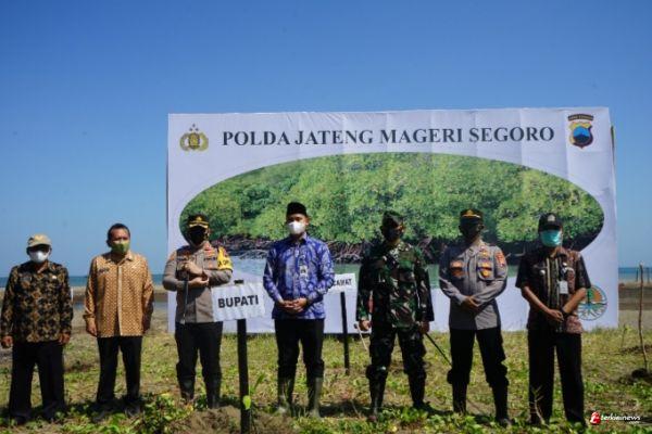 Dengan Tema Polda Jateng Mageri Segoro akan di tanam 62500 tanaman mangrove di Pantai Indah Kemangi dan kegiatan ini juga diikuti oleh 13 Polres jajaran Polda Jateng yang mempunyai pesisir pantai.