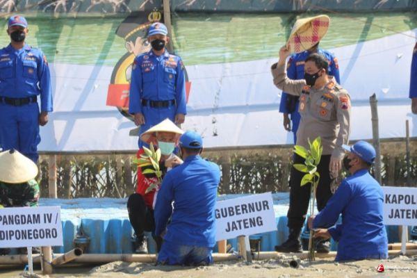 “Penanaman mangrove ini bertujuan untuk mencegah wilayah kita dari abrasi, menjaga ekosistem laut serta menekan dan menyerap emisi,” jelas Kapolda Jateng.