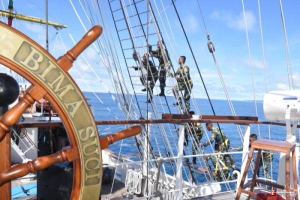 Ini serunya kompetisi Ketangkasan Kebaharian Taruna Akademi Angkatan Laut (AAL) Disela Pelayaran Sabang-Nias dalam upaya tetap menjaga semangat dan team work serta menguji sejauhmana penguasaan Ilmu Kebaharian 89 Taruna AAL Tingkat lll Angkatan ke-68, Satuan Latihan Kartika Jala Krida (Satlat KJK) 2021 saat Kri Bima Suci Lego Jangkar di Pulau Dalam Nias, Selasa (12/10).