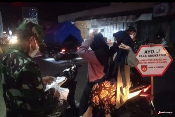 Ditengah pandemi covid- 19 yang sampai saat ini masih berlangsung, Babinsa Koramil 09/Blado laksanakan patroli malam di jalan arah Kec .Blado menuju ke Kec. Bandar Selasa (12/10/21) malam, untuk memberikan himbauan tentang Prokes seraya sambil membagikan masker kepada warga penguna jalan yang kedapatan tidak menggunakan masker.