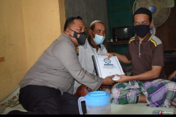 Kapolres Demak AKBP Budi Adhy Buono, didampingi Wakapolres Demak Kompol Johan Valentino, beserta beberapa pejabat utama Polres Demak, memberikan Al Qur’an dalam bentuk Braille kepada Muhammad Haris, seorang remaja yang mengalami kebutaan sejak usia 11 tahun, Kamis (14/10) siang.
