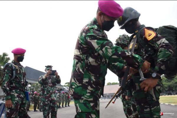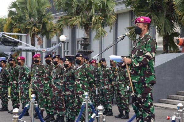 Gubernur Akademi Angkatan Laut (AAL), Mayor Jenderal TNI (Mar) Nur Alamsyah, S.E., M.M., M.Tr (Han)., mengapresiasi dan menerima kembali 23 Taruna Tingkat lll Korps Marinir Angkatan ke-68 yang berhasil menyelesaikan Pendidikan Komando (Dikko) Korps Marinir di Lapangan Banda, Kesatrian AAL Bumimoro, Surabaya, Senin (18/10).