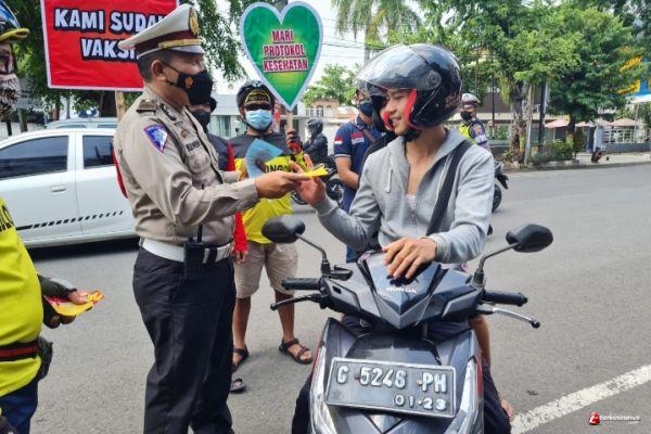 Bagi Masker Hingga Glorifikasi Penggunaan Aplikasi Peduli Lindungi Oleh Satuan Lalu Lintas Polres Pekalongan Kota