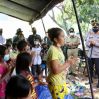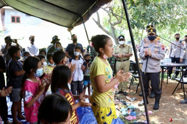 Kehadiran Kapolda di lokasi, disambut sejumlah anak-anak yang dengan ceria menyanyikan lagu "selamat datang bapak". Sempat turut bertepuk tangan bersama anak-anak, Kapolda langsung bercengkrama dengan sejumlah warga pengungsi.