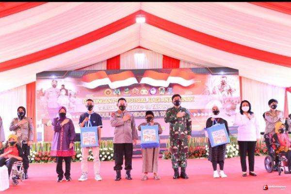 Panglima TNI Marsekal Hadi Tjahjanto dan Kapolri Jenderal Listyo Sigit Prabowo menghadiri kegiatan dukungan psikososial kepada anak-anak dan disabilitas yang terdampak Pandemi Covid-19.