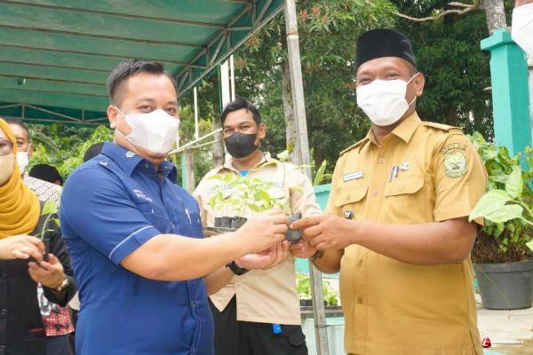Bupati Lingga juga mendampingi Ketua TP PKK Kabupaten Lingga Maratusholiha, membagikan bibit cabe untuk PKK masing-masing desa.