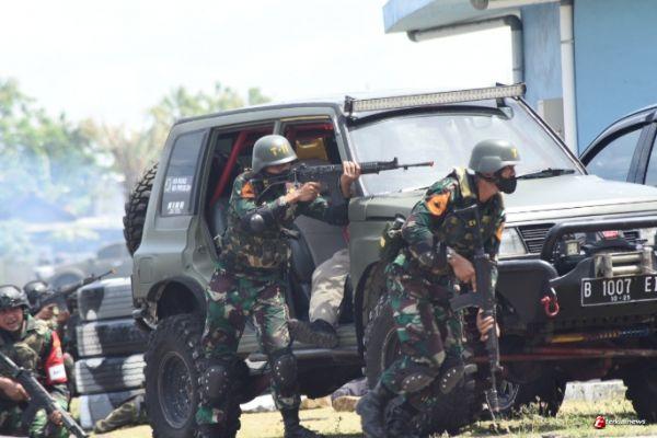 Dalam latihan tersebut, para personel terbagi dalam isolasi sasaran (penyekatan), penguasaan pancangan kaki atau penempatan senjata bantuan (Senban), serta serangan ke dalam kota dan pembersihan.